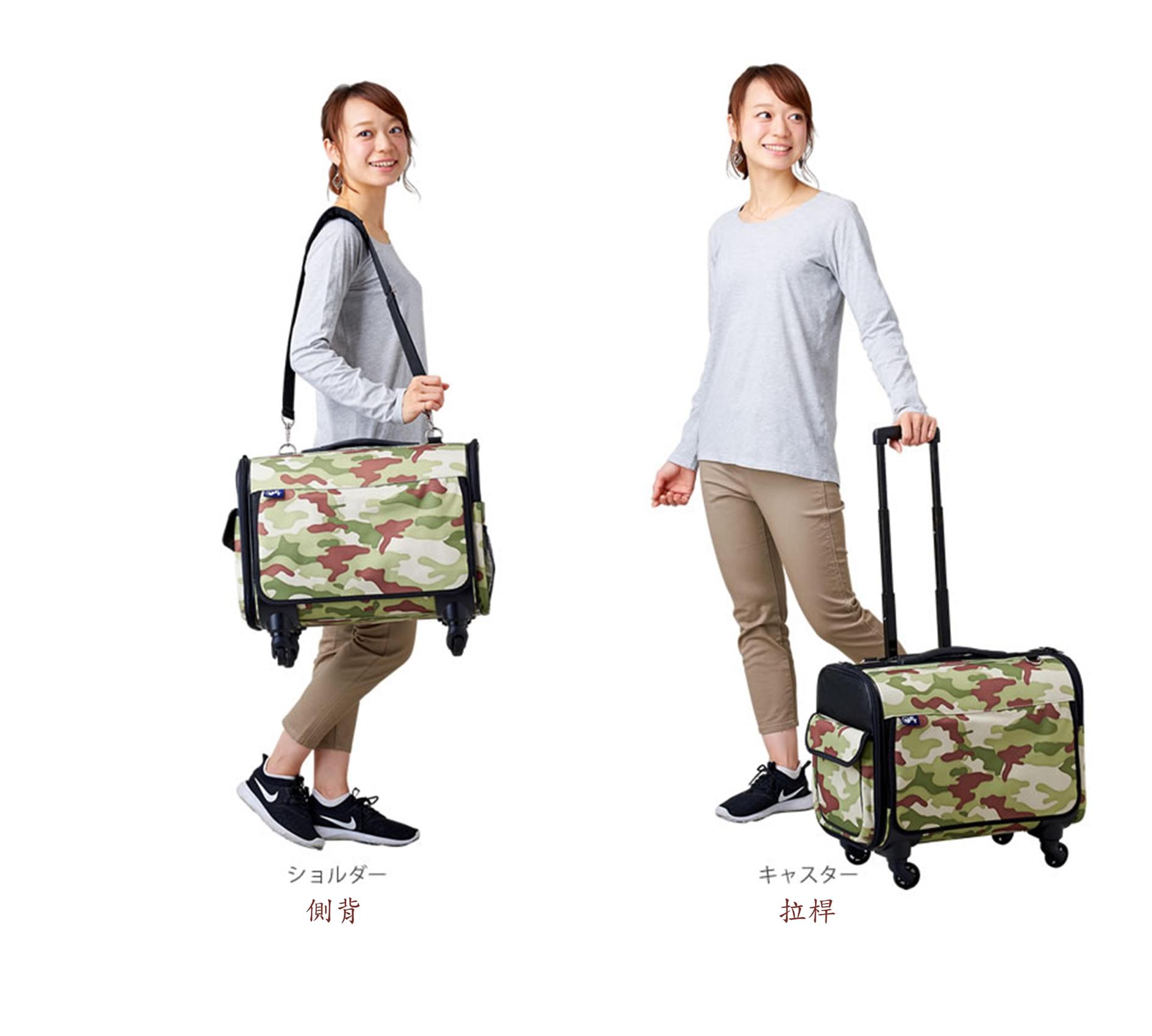 ■ 具可拖拉、後背、側背、⼿提等多功能使用方式,能滿⾜外出時不同的使用需求。